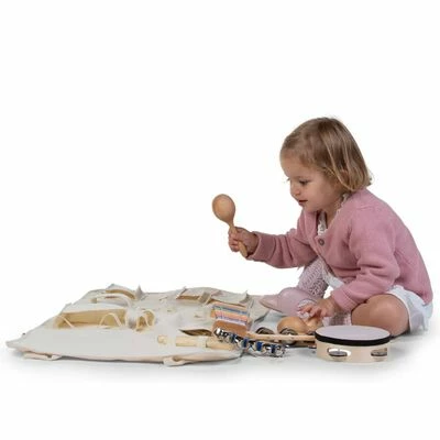Les instruments musicaux jouets stimulent tous les sens et permettent aux plus jeunes musiciens de se familiariser avec l’improvisation musicale. Le coffret musical pour les tout-petits invite à des expérimentations musicales et développe les capacités auditives et motrices. Ainsi, l’ensemble de musique jouet est non seulement amusant, mais aussi éducatif ! De plus, les instruments sont fournis dans un organisateur pratique. De cette façon, vous pouvez ranger soigneusement l’ensemble après avoir joué. L’ensemble se compose des 8 instruments jouets suivants : tambourin, claves, maracas, ganzá, xylophone, claquette rythmique, triangle et clochette.