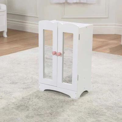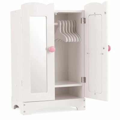 Les miroirs jumeaux sont faits de plastique sûr et robuste et l’armoire est livrée avec six cintres. Cette armoire est parfaite pour les poupées de 18″ et sera un excellent accessoire à la chambre d’une poupée.