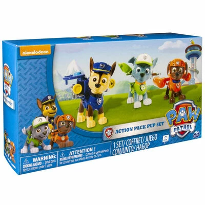 Aucune mission n’est trop difficile, aucun chiot n’est trop petit ! Vous pouvez jouer à nouveau toutes les missions de sauvetage avec les 3 chiots du pack d’action de la marque Paw Patrol : Rocky, Zuma et Chase !