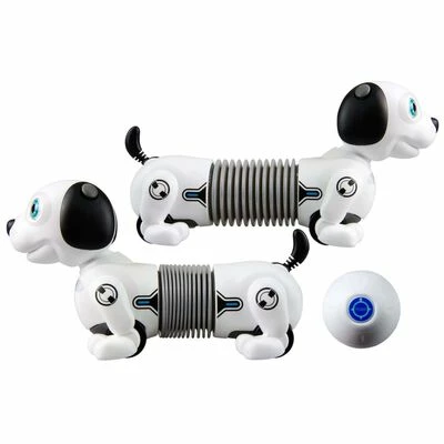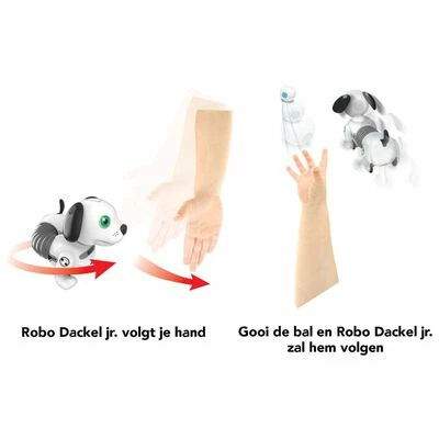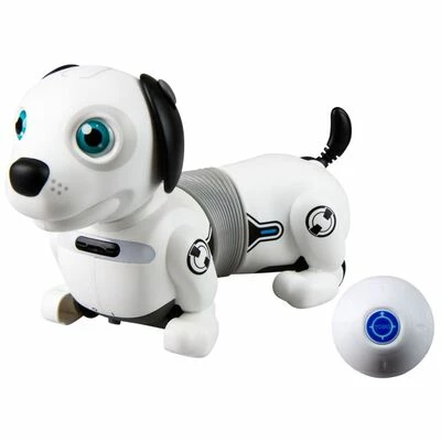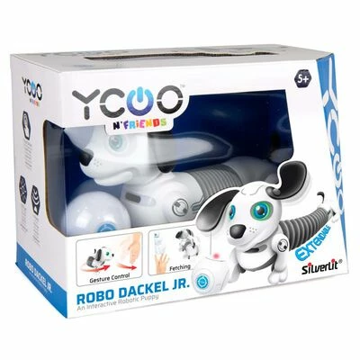 Ce Robo Dackel Junior de la marque Silverlit est un chiot robotique interactif avec contrôle gestuel et SmartBall pour le suivi automatique et la récupération.