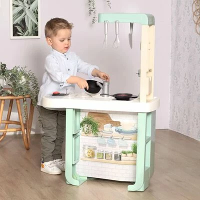Avec son design très moderne et ses douces couleurs pastel, elle s’accordera Ă l’intĂ©rieur de chacun. La hauteur de 96 cm est idĂ©ale pour les enfants Ă partir de 3 ans. Cette cuisine jouet est très stable et solide, rendant les enfants heureux et promettant des heures de plaisir !