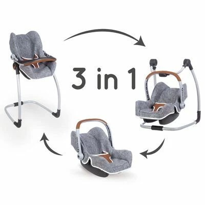 Votre tout-petit peut se faire passer pour une mère ou un père et emmener sa poupée partout avec ce siège auto et chaise pour poupées Maxi-Cosi 3 en 1 gris de la marque Smoby.
