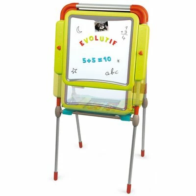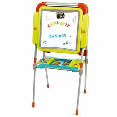 Votre enfant peut montrer sa créativité avec ce tableau Evolutiv de la marque Smoby. Le tableau combine un côté tableau magnétique et un côté tableau noir.