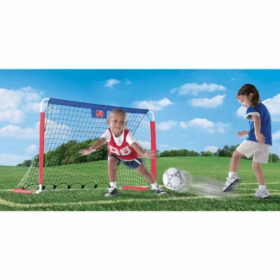 Regardez vos tout-petits profiter d’un jeu amusant de football, s’entraîner à lancer et à attraper avec ce but de football Step2 2-en-1 pour enfants et pitch-back.