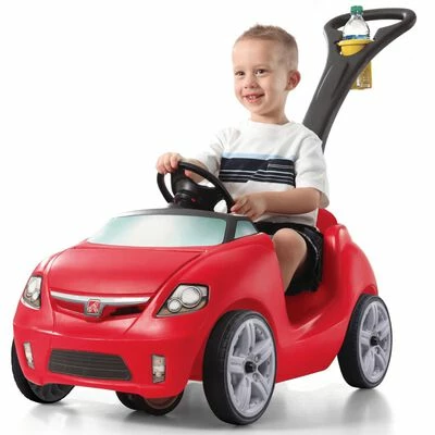 Cette voiture de sport à pousser pour enfants Easy Steer Sportster de la marque Step2 est une voiture qui tourne de tête lorsque votre enfant s’en promène dans le quartier.